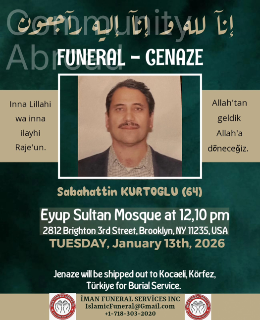 Amerika’nın New York eyaletinde yaşayan 64 yaşındaki Sabahattin KURTOGLU vefat etmiştir.