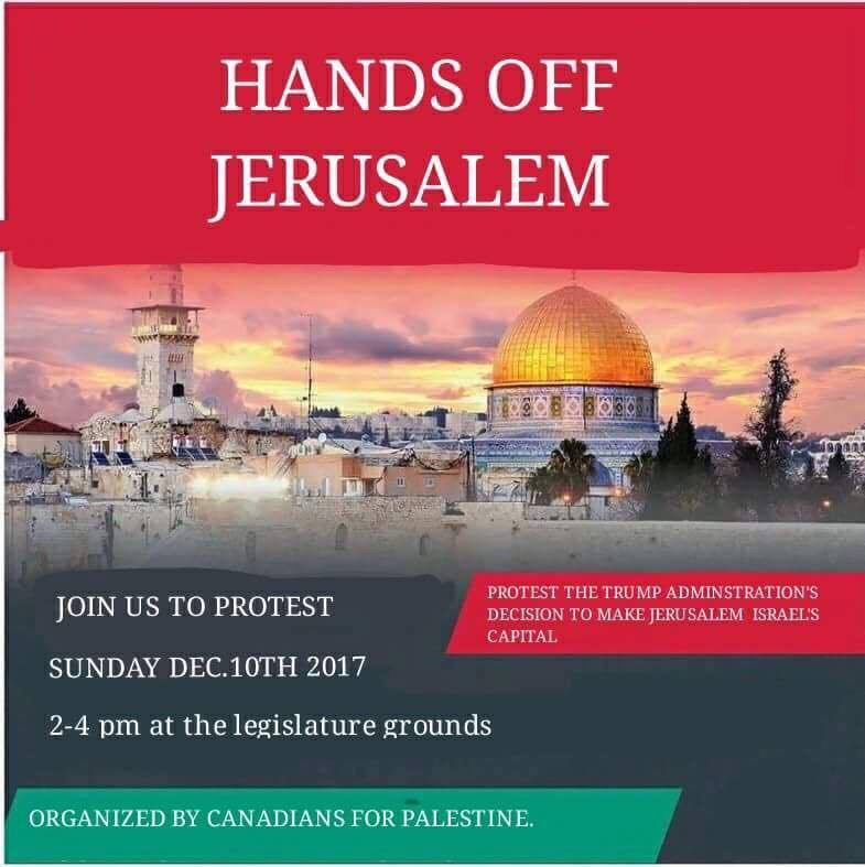 Yarın saat 2:00'de Alberta Eyalet Meclisi binasının önünde Trump'un Kudüs'u İsrail'in başkenti olarak tanıma kararını protesto için bir gösteri düzenleniyor.