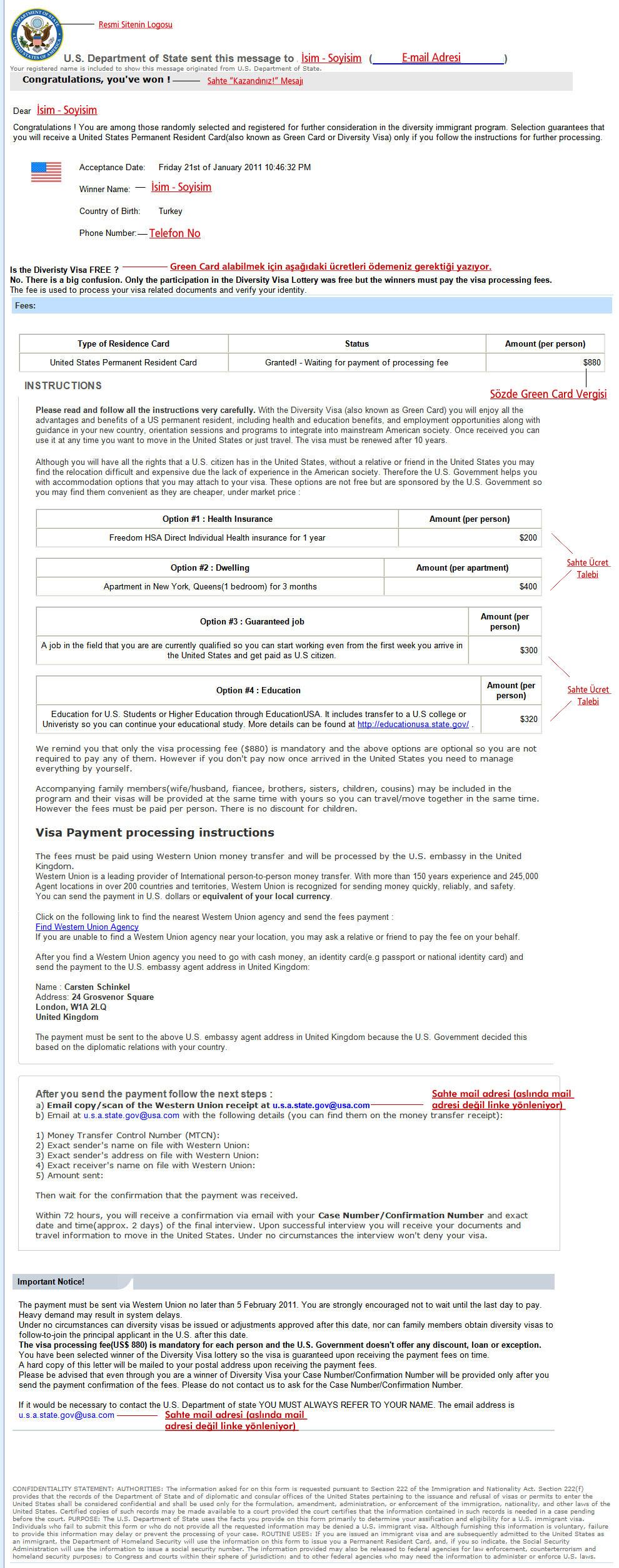 * Green Card kazananlara asla e-mail gönderilmemektedir.