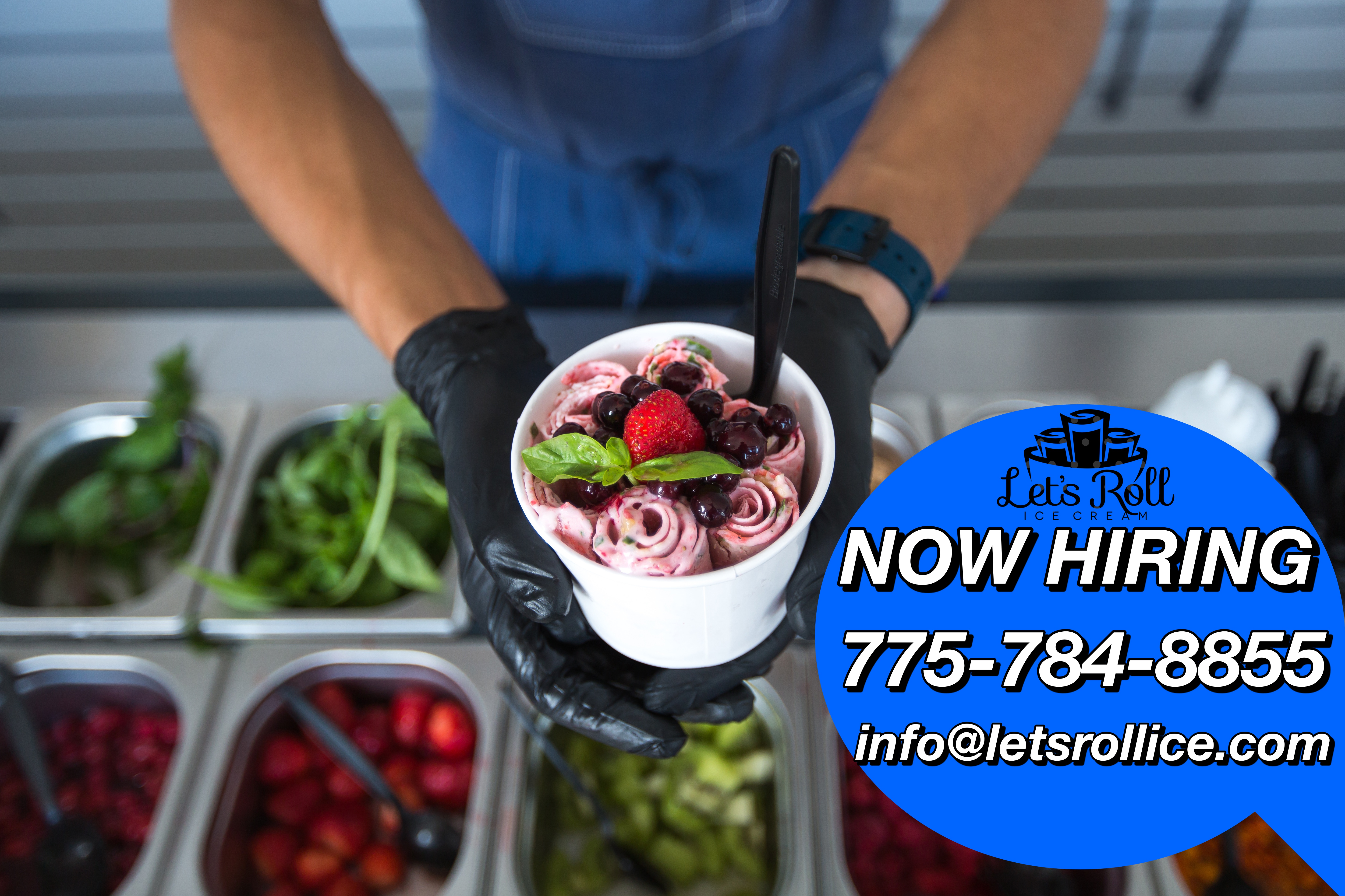 Let's Roll is looking for friendly and hard working applicants who are interested in building delicious ice cream creations in a new and innovative way. You will learn how to make Thai-style rolled ice cream. We are offering seasonal part-time and full-time shifts as well as training for the position starting at per hour plus tips. Our location will be located at Meadowood Mall next to Starbucks. If interested, please sent <a href='mailto:messages!