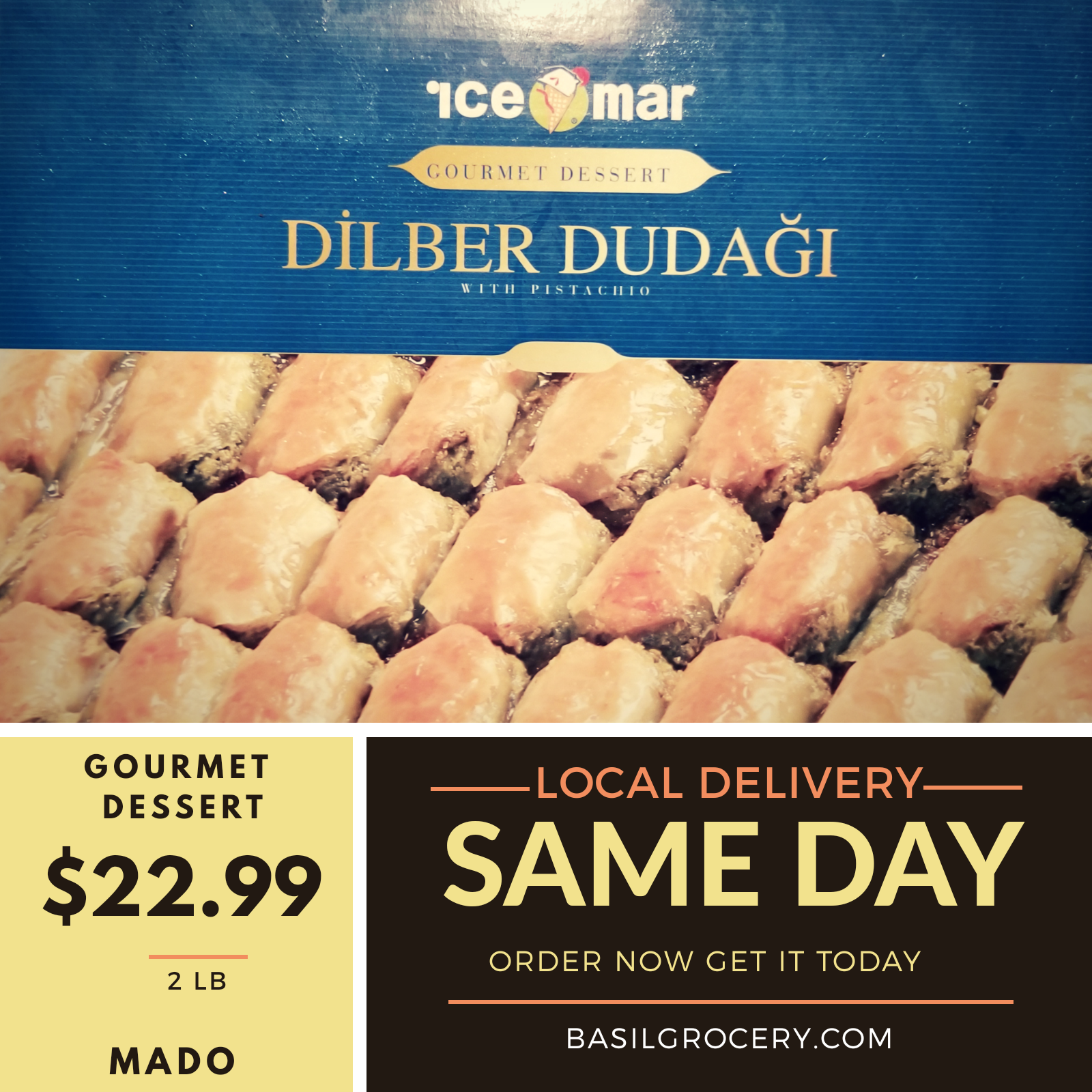 Değerli dostlar, bayram tatlı çeşitlerimiz sizler icin hazır. Nj icin local delivery hizmetimiz tüm hızıyla devam etmekle birlikte isteyenlere amerika geneli ship de edebiliriz. MADO ve Seyidoğlu marka tatlı çeşitlerimiz en uygun fiyata basilgrocery.com adresinde.