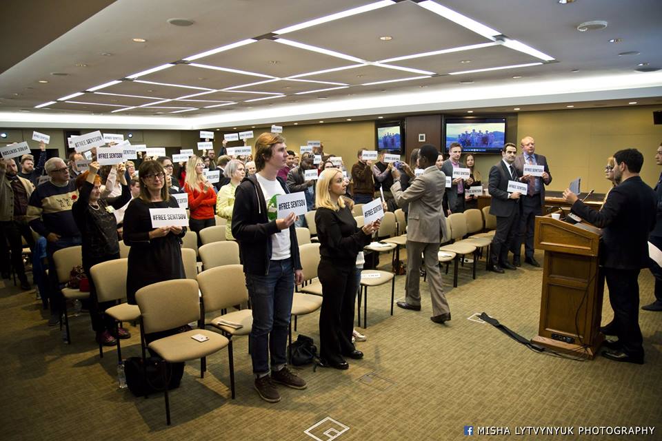 Gösterime katılanlar ellerinde #freesentsov yazılı kağıtlarla, Rusya’da yasa dışı şekilde 20 yıl hapse mahkum edilen Ukraynalı yönetmen Oleg Sentsov ve işgal altında bulunan Kırım ile Rusya’daki hapishanelerde tutulan diğer siyasi tutsaklara destek eylemi düzenledi.