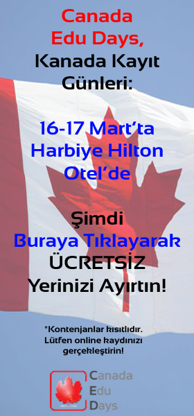 Kanada'nın en popüler okullarının katılımıyla gerçekleşicek olan Canada Edu Days'e ücretsiz kayıt olun. 16-17 Mart Harbiye Hilton otelde düzenlenecek etkinliğe buradan kayıt olabilirsiniz: http://www.canadaedudays.com/kayit-ol/