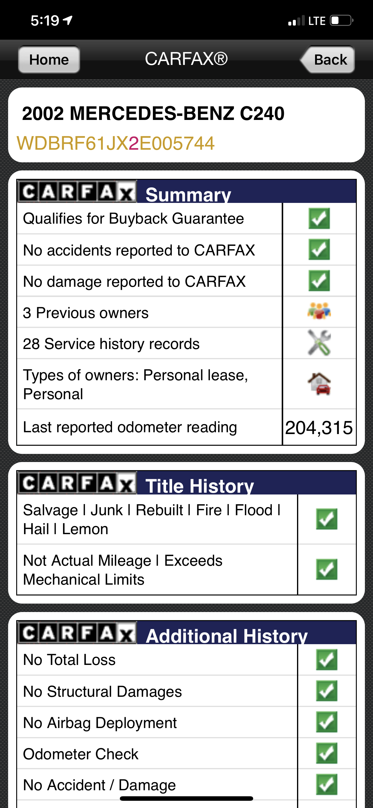 2002 Mercedes-Benz C240 FULL+FULL, has clean title never been any accident. All leather seats, sunroof, interior in GREAT condition. You can come and test drive. Clean Car History and Service records. 2.6Liter V6 Strong engine !!