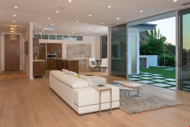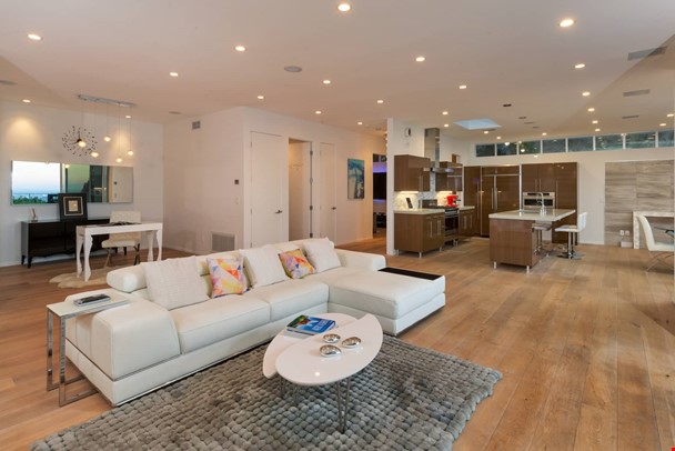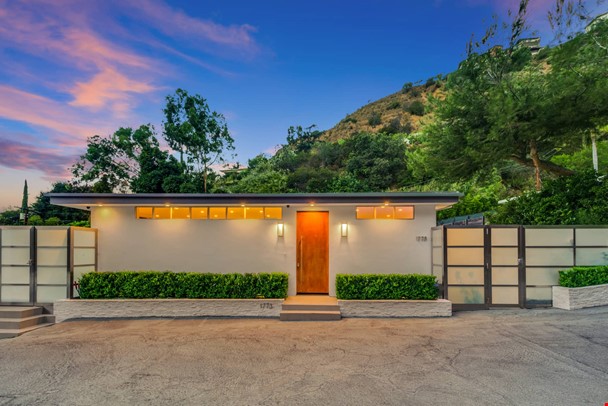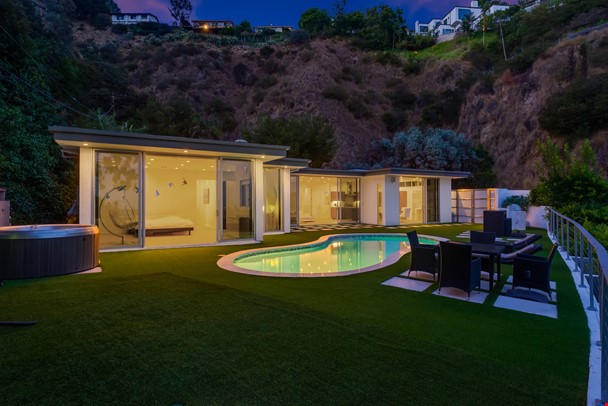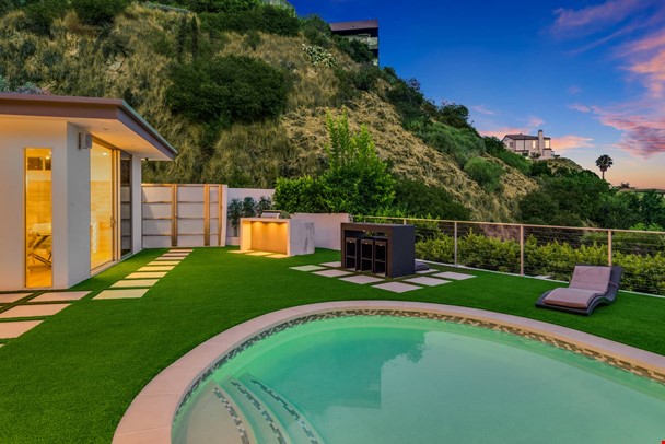 Nestled</a> above the famed Chateau Marmont and Sunset Strip with captivating views of the city, this outstanding contemporary modern home features an open and airy floor plan with a entry foyer, dramatic 9½' ceilings, and well-appointed living room with fireplace. Expansive walls of glass lead to a beautiful entertainer's backyard with sun-drenched salt water pool, spa, bbq area with outdoor dining, and a viewing trail and deck. Parking includes a two-car garage on a private driveway along with additional two outdoor parking spaces. This stylish home offers a spacious master suite and luxe bath with soaking tub and walk-in closet, a separate residential wing with three en-suite bedrooms, home office/tv room opening to a rear courtyard, and energy efficient features like dual-glazed windows/doors and solar panels for pool heater. Modern finishes including wide plank white oak floor, custom tile baths, and sleek gourmet kitchen complete this extraordinary offering.