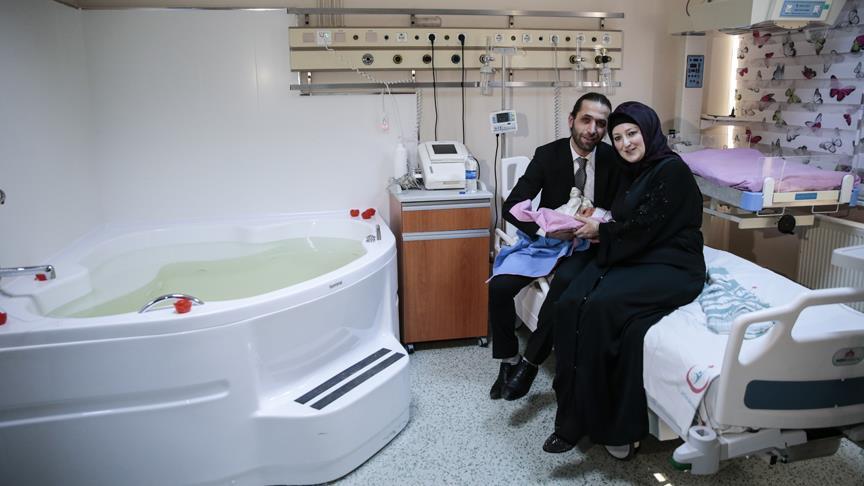 Doğum için hastane bünyesinde faaliyet gösteren suda doğum ünitesini tercih eden Kanadalı anne, on gün önce bebeği Layla Afife'yi kucağına almanın mutluluğunu yaşadı.