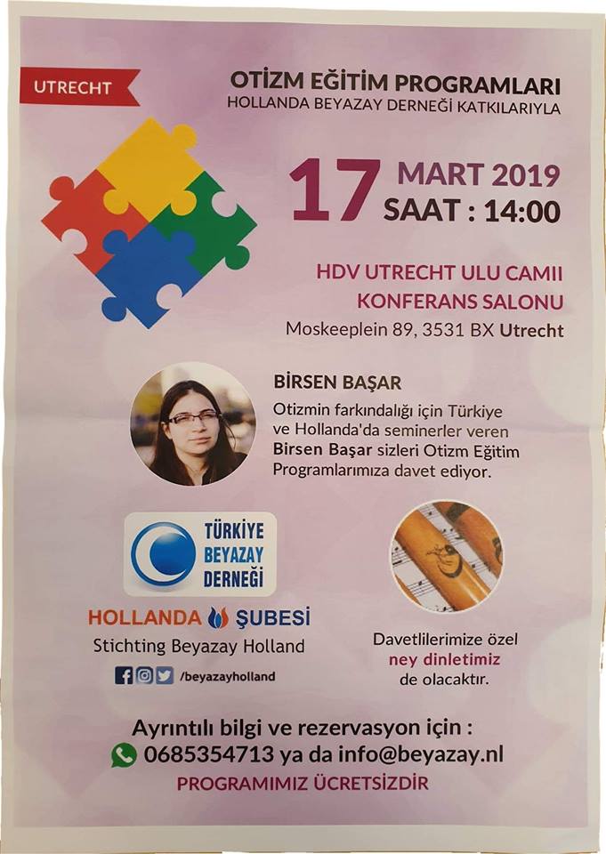 Otizmin farkındalığı için Türkiye ve Hollanda'da seminerler veren Birsen Başar sizleri Otizm Eğitim Programlarımıza davet ediyor.
