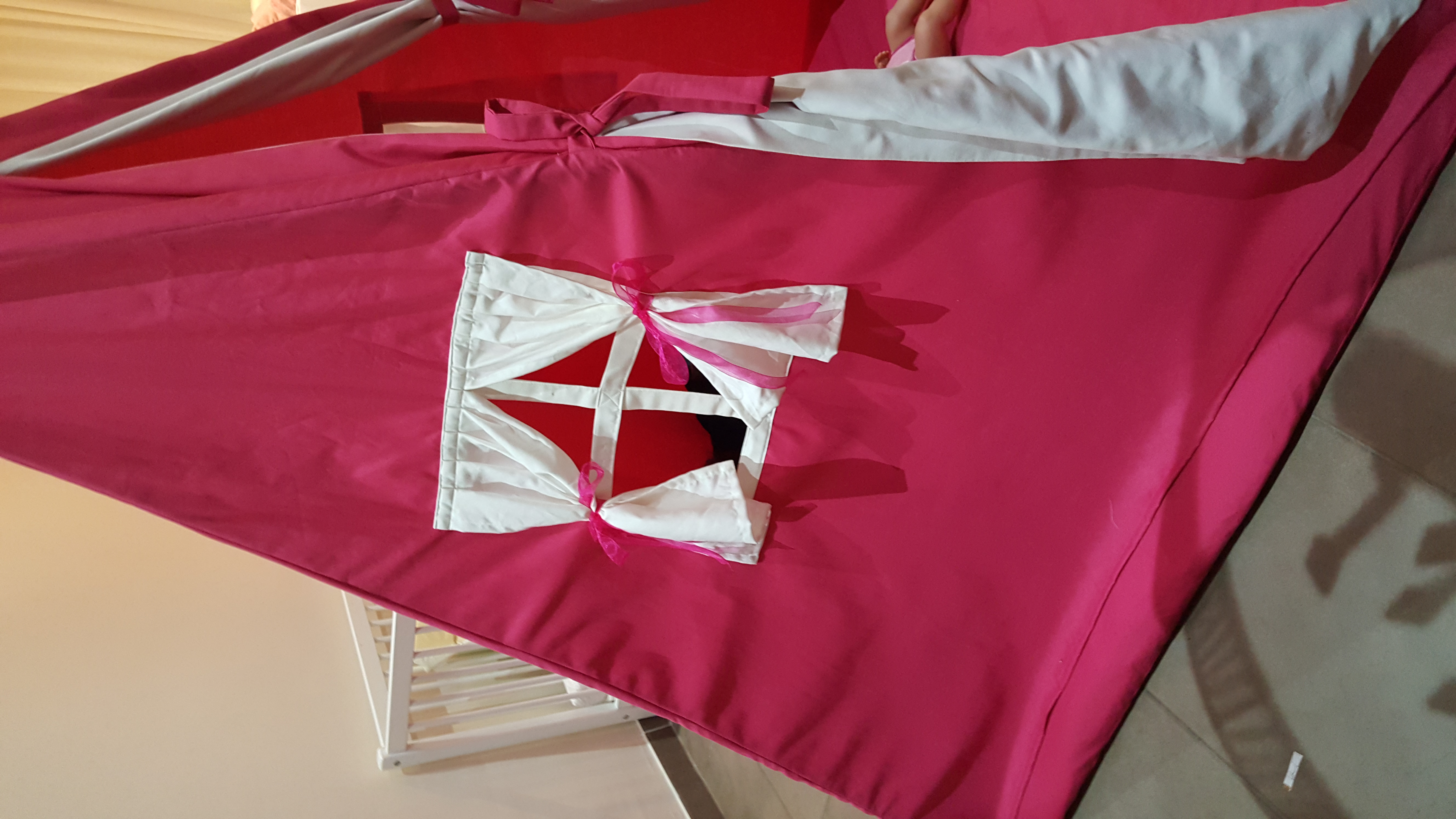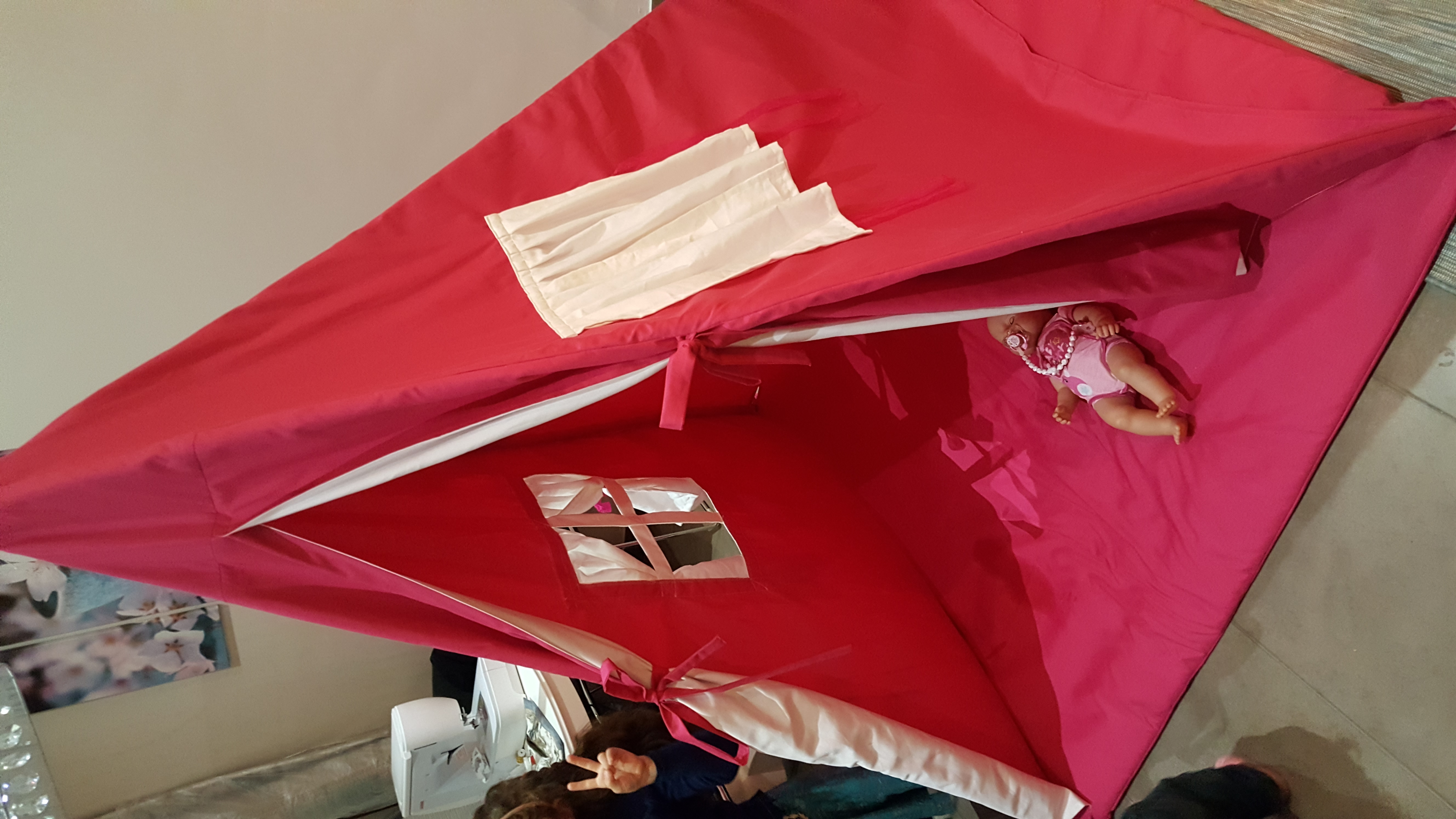 Tipi tent helemaal zelf gemaakt afmetingen zin 140 op 140 cm breed en 155 cm hoog het heeft 2 ramen 😀