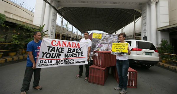 Evsel atık, plastik şişe ve çantalar, gazeteler ve kullanılmış yetişkin bezlerinden oluşan toplam 103 konteyner dolusu Kanada atığı, 2013-2014 yılları arasında Manila'ya toplu halde getirilmişti. Filipinler, Kanada'yı, 1995 yılında imzalanan Tehlikeli Atıkların Bertaraf Edilmesi ve Sınır Aşınmasına İlişkin Basel Sözleşmesini ihlal etmekle suçluyor.