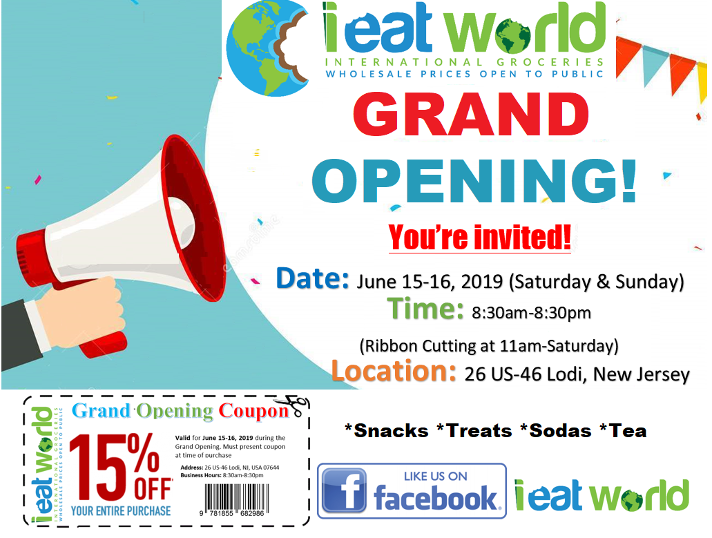 North Jerseyde bir ilk olan,Toptan ve perakende magazamizin acilisini yapmakdan gurur duyariz.Herkesi bu acilisa davet ediyoruz.Gelin ve magazimizi urunlerimizi gorun.Adresimiz 26 US-46 Lodi NJ 07644.Tarih Haziran 15 2019 ve Acilis kurdelesi saat 11 de kesilicek.Acis saatlerimizde bir degisiklik yok saat 8:30am-8:30pm arasi yine acigiz.Icecek ve Yiyecek ikramlarimiz olacakdir.Gorusmek Uzere!!!