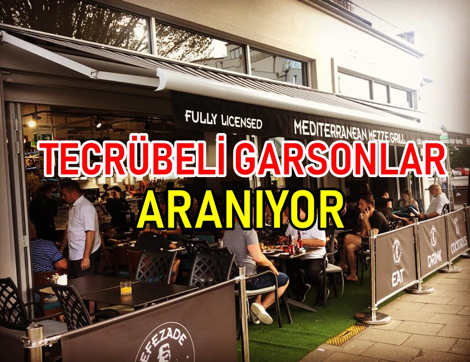 Calisma izni ve Ingilizce’si olan tecrübeli garsonlar aranmaktadir! Efezade mezze Grill 12-14 Loughton, (Central line Debden station 100m) IG10 3ST