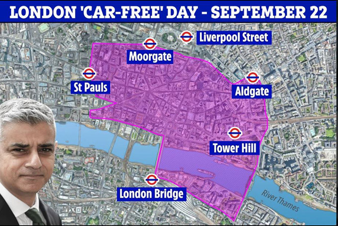 22 Eylül’de gerçekleştirilmesi planlanan “arabasız gün” etkinliğiyle London Bridge, Tower Bridge ve City of London’ın büyük bölümünden oluşan 18 bölgeye arabayla girmek mümkün olmayacak. Bölgelerde yürümeyi, bisiklet sürmeyi ve toplu taşımayı teşvik edici etkinliklerin yanında, eğlenceli aktiviteler de düzenlenecek. İlk defa bir Londra Belediye Başkanı, şehir merkezindeki yolların bu kadar büyük bir bölümünü kapatıyor.