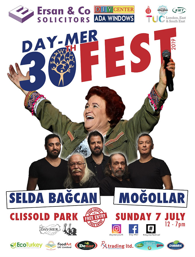 Londra’da 30 yıldan bu yana yapılmakta olan ve geleneksel hale gelen DAY-MER Kültür ve Sanat Festivali etkinlikleri devam ediyor. Festivalin finali, 7 Temmuz Pazar günü Selda Bağcan ve Moğollar konseri ile gerçekleşecek.