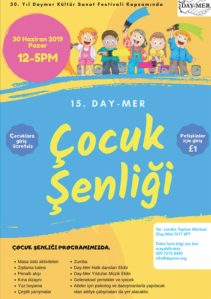 – 30 Haziran Pazar, 13.00: Çocuk Şenliği, Kuzey Londra Toplum Merkezi