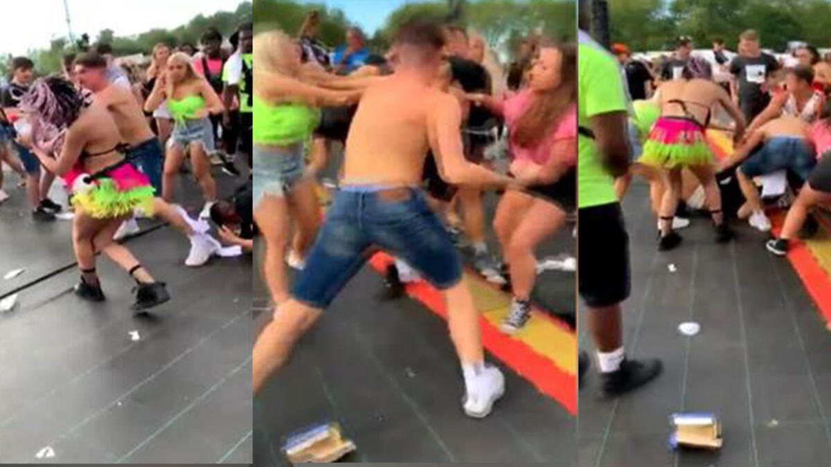 Bir grup erkeğin birbirini yere yatırıp yumrukladığı ve tekmelediği kavga festivale katılan yüzlerce kişinin gözü önünde gerçekleşti.