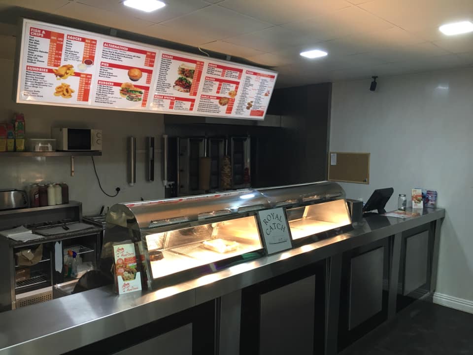 Sheffield tarafinda satilik Fish & chips ve Pizza dukkani.