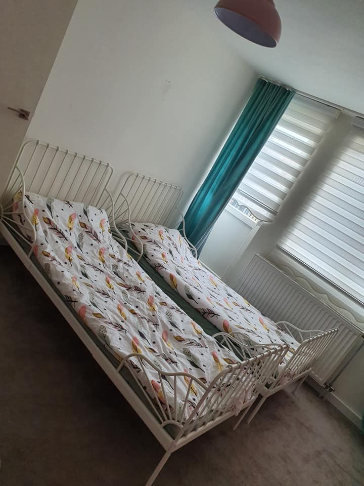 2 x IKEA ZGAN yetiştirme yatakları, perdeli çerçeveler, şilteler ve yatak çadırları dahil