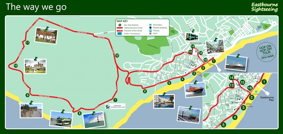 Eastbourne Hop on Hop off bus Gezmek isteyenler bu haritayi ve saatleri takip edebilir.Bilginize her yarim saate kalkiyor.Sightseen bus Tum gezilecek yerlere gidebilirsiniz.