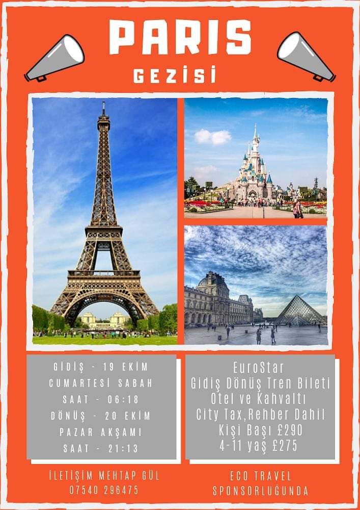 19 Ekim ile 20 Ekim arası Paris gezimiz vardır. katilmak isteyen arkadaşlar lütfen bana mesaj atın.