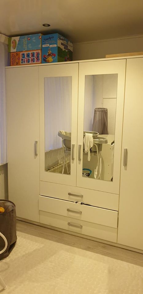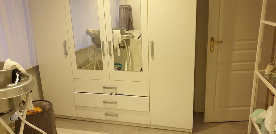 Yeni 4 Kapılı gardrop 3 çekmeceli.Yarım yıl kullanıldı o yüzden tamamen yeni. Hasar 349 euro idi. Fiyat 235 euro ya da iyi bir teklif yap.