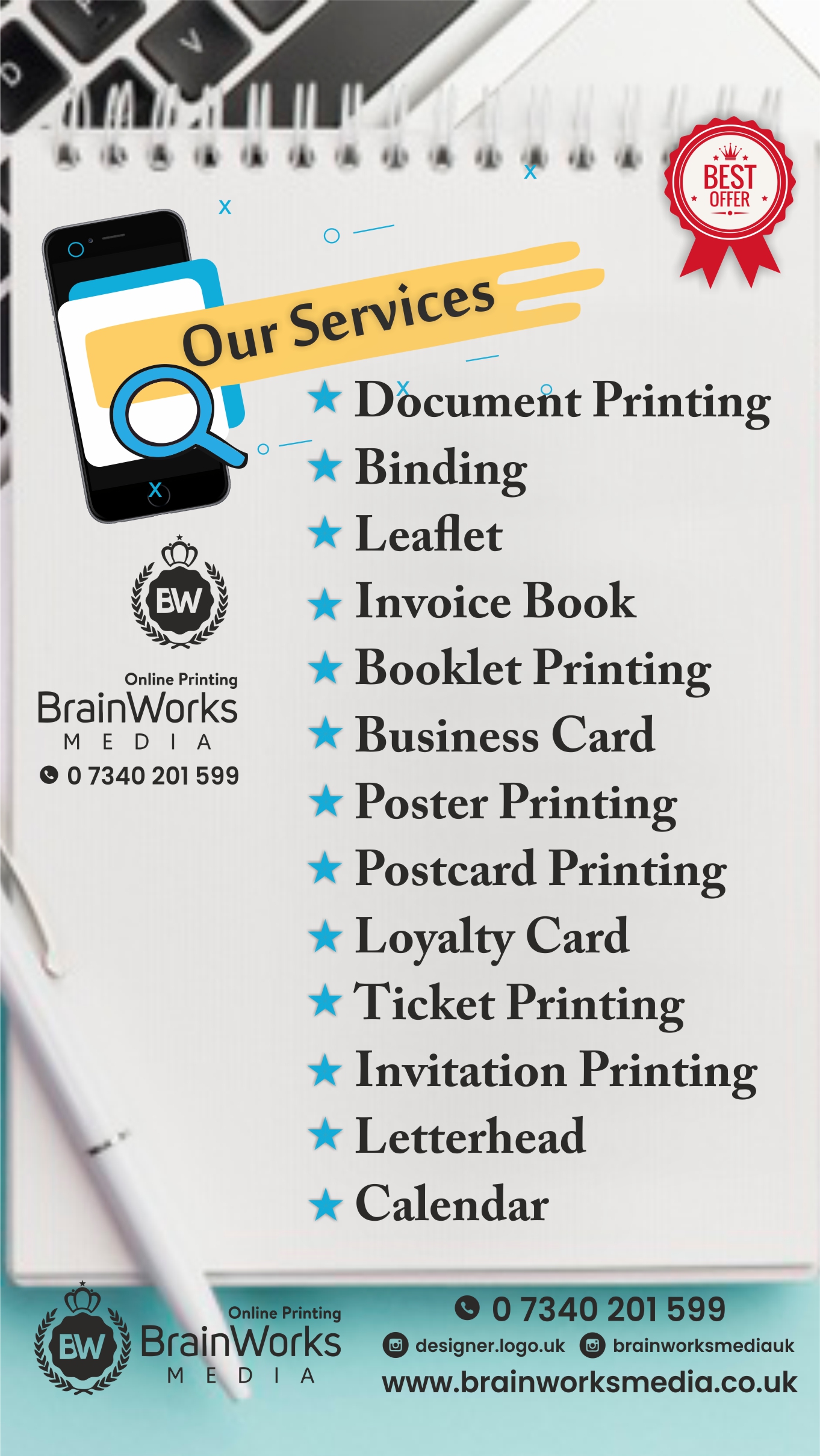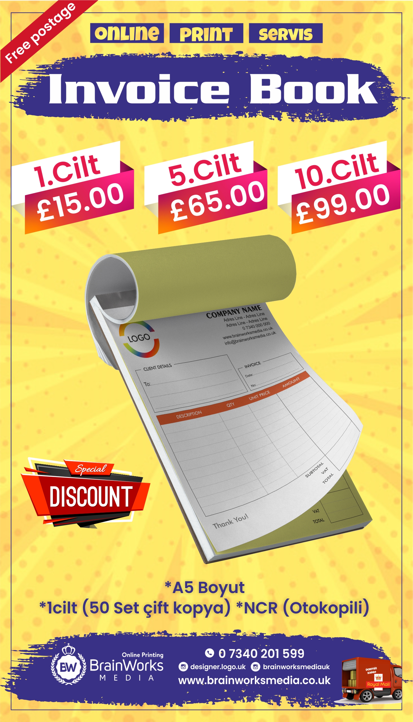 100 Adet Kartvizit, 100 Adet Broşür, 1Adet Fatura