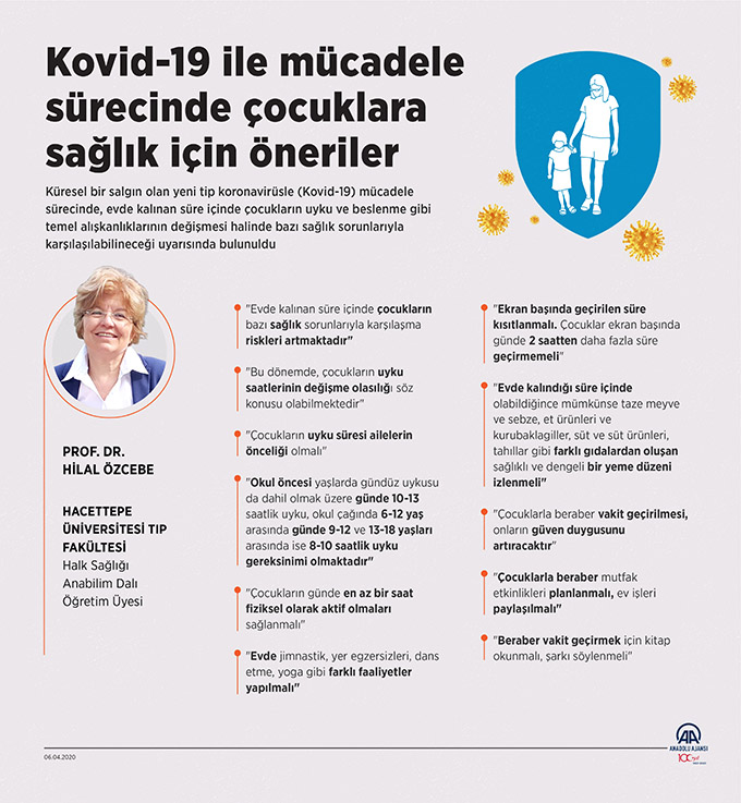 Özcebe, bunun salgınla mücadele eden ülkelerin öncelikli önlemlerinden biri olduğuna dikkati çekerek, "Evde kalınan süre içinde çocukların bazı sağlık sorunlarıyla karşılaşma riskleri artmaktadır." dedi.