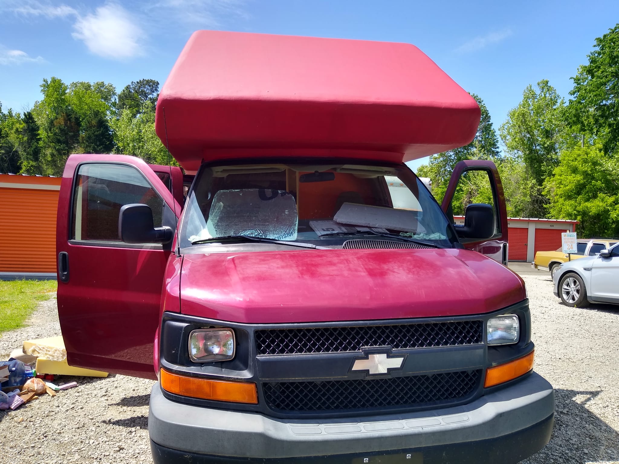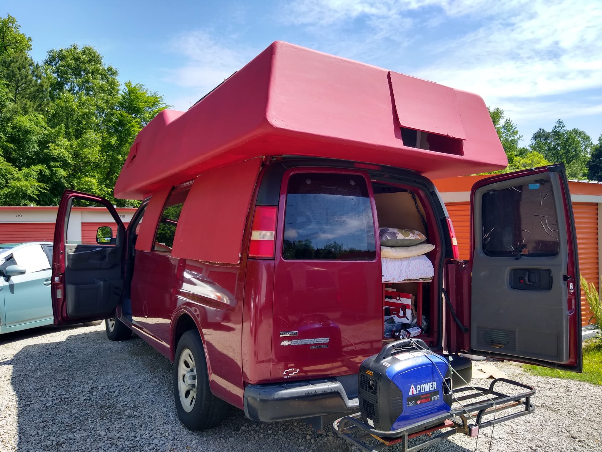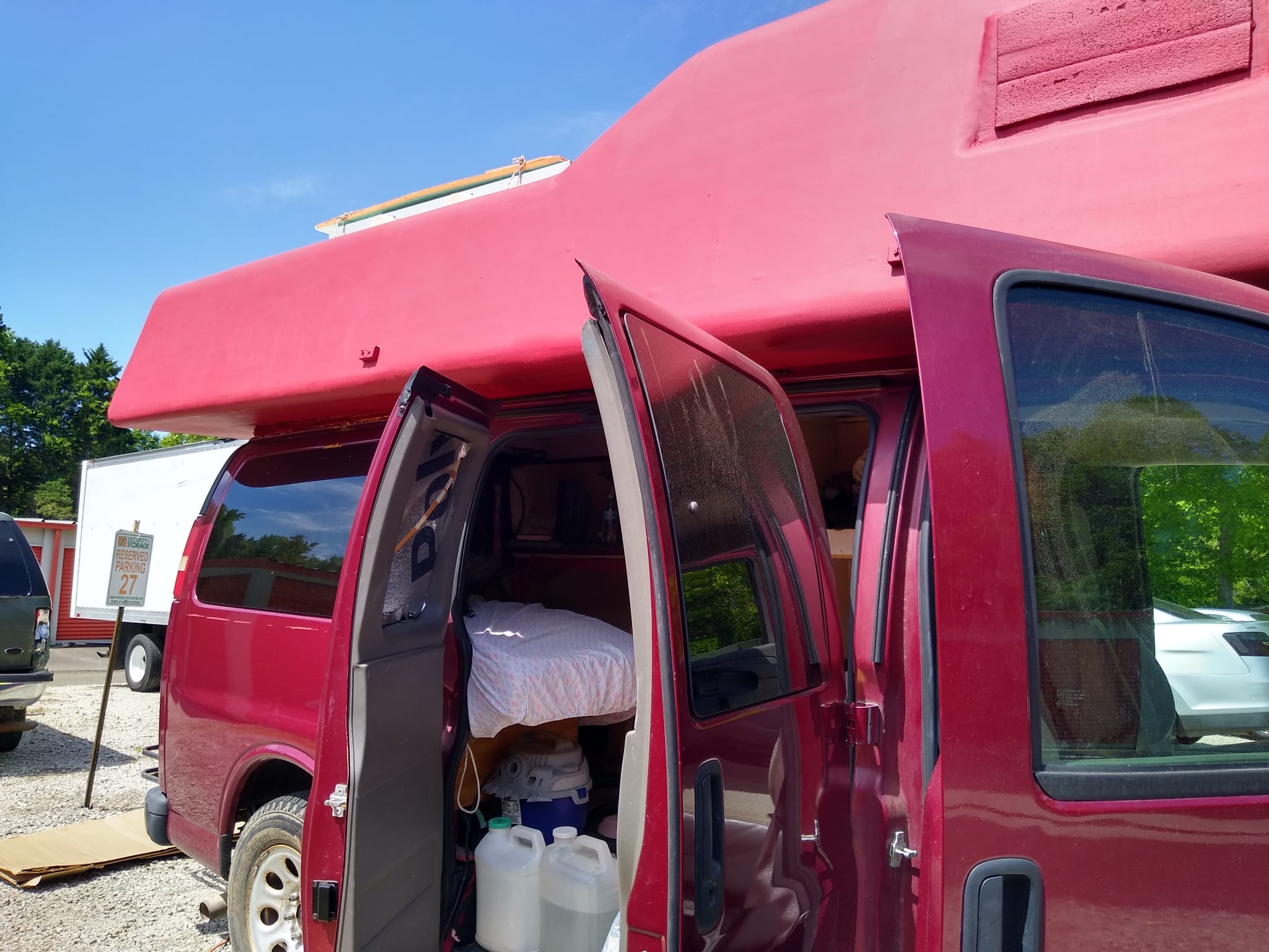 2009 Chevy Express kendim minubusten dönüştürup karavan yaptim. Yer Durham, North Carolina. Aracimiz 113,600 milde, cok temiz kullanilmis, bakimlari duzenli yapilmis, mekanik olarak cok iyi durumdadir. Ust kismini kendim XPS kopuk kullanarak yaptim, uzerini epoksi ile kaplayip fiberglas haline getirdim. Cok hafif ve guclu oldu. Ark tekerlere guclendirilmis yayli amortisor taktim. Uzerinde 2 adet gunes paneli(her biri 100 watt), 88 amp lifepo4 aku, 5000 btu ev tipi klima mevcut. Kendimiz 2 yil icinde yasadik ve gezdik. Seyyar calisanlar icin mukemmel cozum, kalacak yer derdi, kira masrafi olmadan kazandigini biriktir. Hem is ekipmanini hem yatagini mutfagini yaninda tasi. Fiyat 11,000 $.