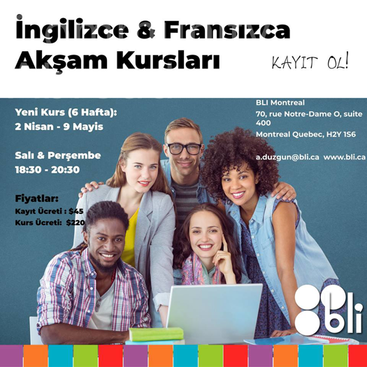 Okulumuz BLI Canada Montreal kampüsünde Ingilizce ve Fransızca akşam kurslarımız başlamıştır.