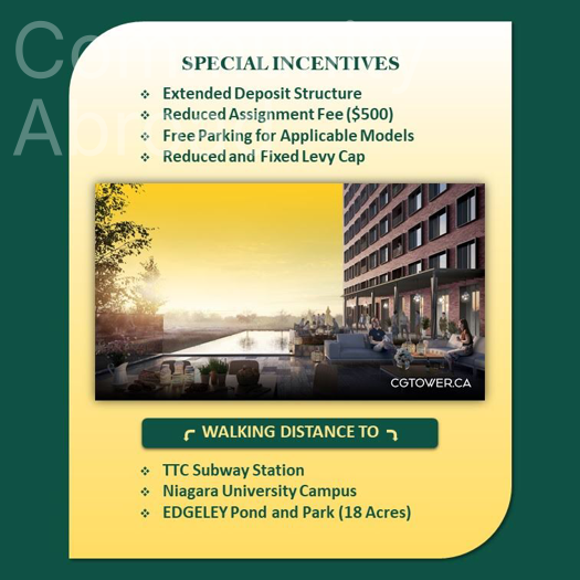 GTA'nin her gecen gun degerlenen lokasyonu Vaughan'in en yuksek binasinda,Metro ve Niagara Universitesi kampusune yurume mesafesinde.