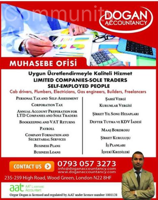 Kaliteli, zamaninda, ozenli servis anlayisiyla , kisiye ozel ve uygun ucretlendirmeyle Dogan Accountancy (Muhasebe Ofisi) WOOD GREEN de yeni ofisinde hizmetinizdedir.
