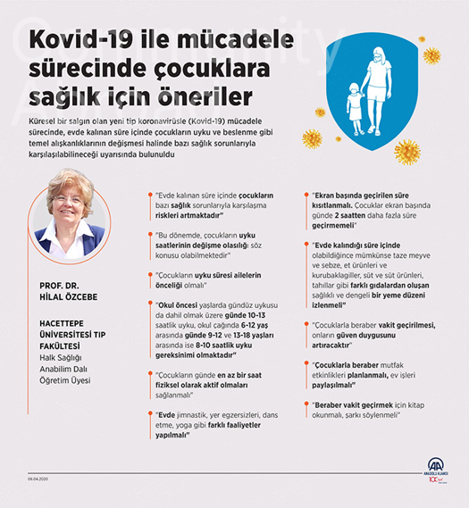 Küresel bir salgın olan yeni tip koronavirüsle (Kovid-19) mücadele sürecinde, evde kalınan süre içinde çocukların uyku ve beslenme gibi temel alışkanlıklarının değişmesi halinde bazı sağlık sorunlarıyla karşılaşabilecekleri uyarısında bulunuldu.