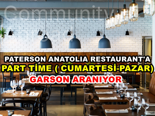 Paterson'da yeni acilan Anatolia Restoran'a garson araniyor.