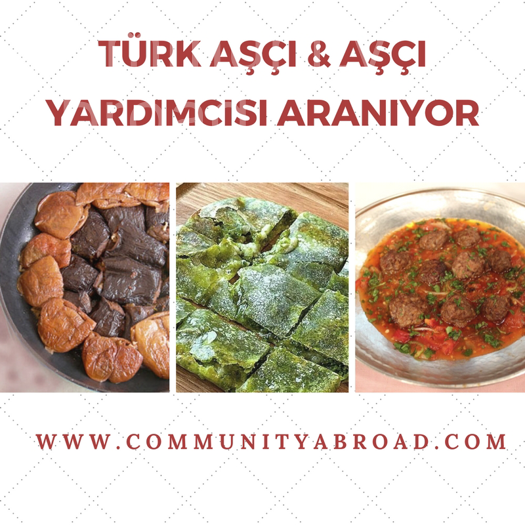 North Carolina’da isletmekte oldugumuz Türk restaurant’imiza deneyimli ve otantik Türk yemeklerinden anlayan full time asci veya asci yardimcisina ihtiyac var.