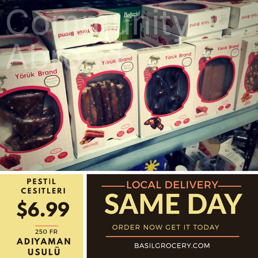 Değerli dostlar, türk grocery ürünlerini tüm amerikaya ship etmeye başladık. Memleketimizin birbirinden ozel urunleri sadece bir tik ötenizde. Basilgrocery.com baklavadan içli köfteye, kahveden pestile kadar 300 den fazla ürün sizleri bekliyor. Basilgrocery.com