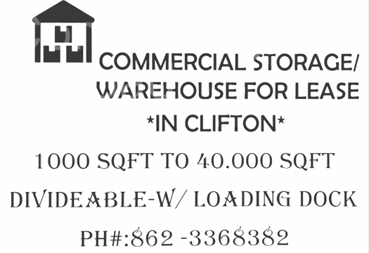 Depo arayanlar icin Clifton, NJ de; 1000 sqft den 40.000 sqft e kadar bolunebilir kiralik depo mevcuttur. Eylul basindan itibaren musait olacaktir. Ilgilenenler 862-3368382 numarali telefondan bilgi alabilirler