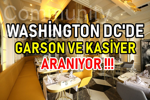Washington, DC de bulunan italian restoranimiza garson/kasiyer aranmaktadir. Muracat edecek arkadaslarin Washington veya yakin civarda yasamasi tercihtir. Muraacat ve detaylar icin 202-5676759 Atilla arayiniz.