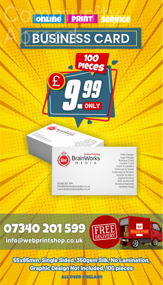 Tasarım Hariç, Kargo dahil, 100 Adet Kartvizit