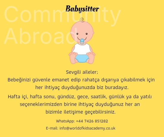 Sevgili anneler LONDRA' da hafta içi/hafta sonu BABYSITTER ihtiyacınız için ; +44 7426 851282 den WhatsApp msj bırakabilirsiniz